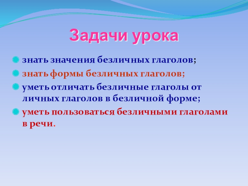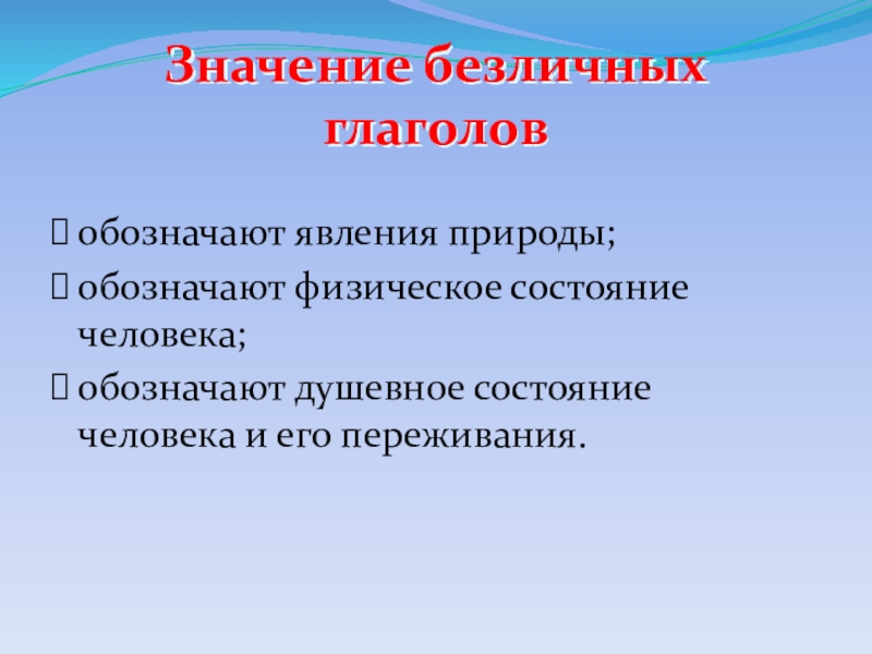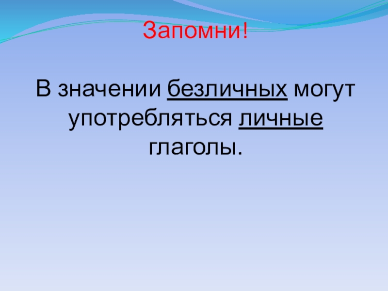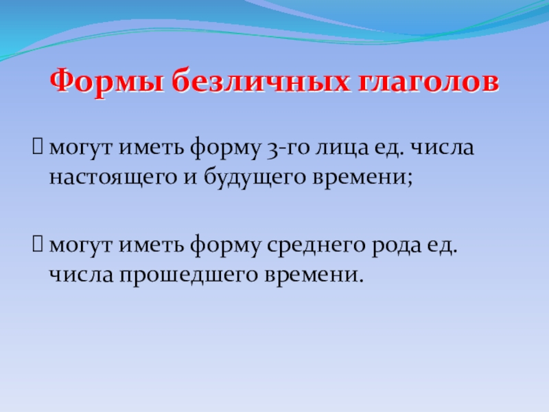 В настоящем и будущем времени безличные глаголы имеют только форму ед. ч., 3 лица