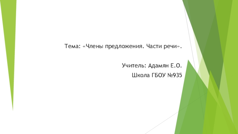 Тема: «Члены предложения. Части речи».Учитель: Адамян Е.О.Школа ГБОУ №935