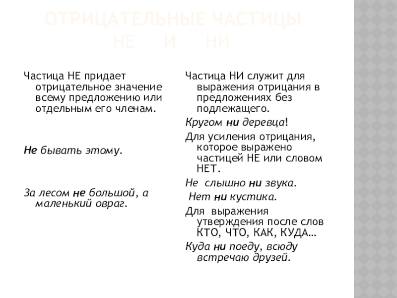 Частица НЕ придает отрицательное значение всему предложению или отдельным его членам.