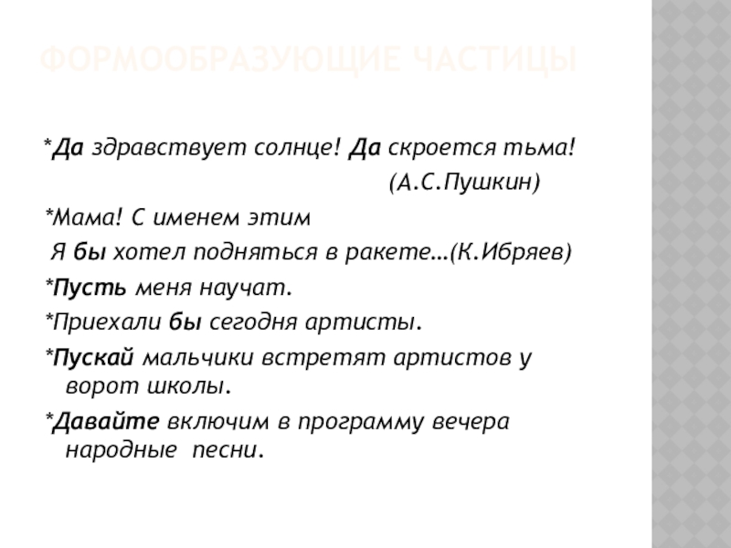 -Повелительного наклонения (ДА, ДАВАЙ, ДАВАЙТЕ, ПУСТЬ, ПУСКАЙ)