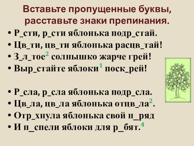 Слайд 8Вставьте пропущенные буквы, расставьте знаки препинания.