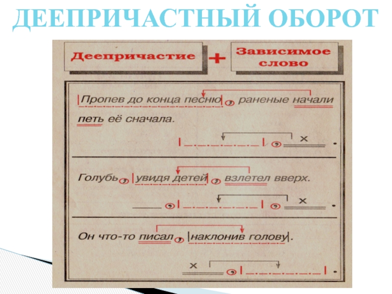 б) деепричастие с зависимым словом.