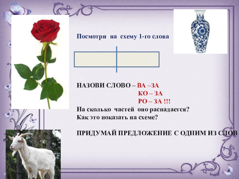 Посмотри на схему 1-го словаНАЗОВИ СЛОВО – ВА –ЗА