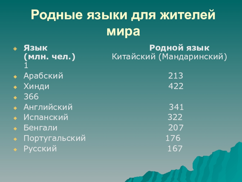 Слайд 5Родные языки для жителей мира