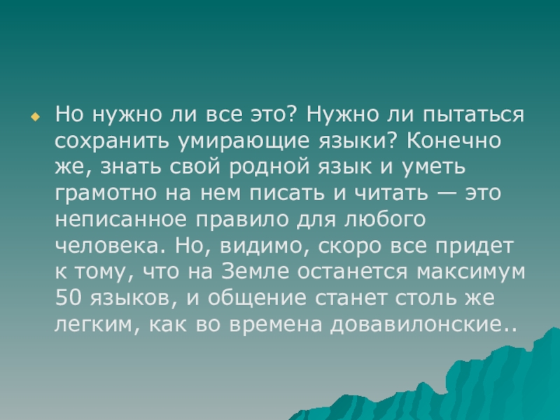 Слайд 22Но нужно ли все это? Нужно ли пытаться сохранить умирающие языки?