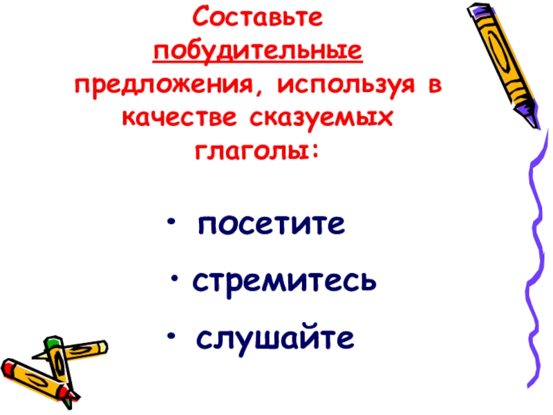 побудительные предложения, используя в качестве сказуемых глаголы: