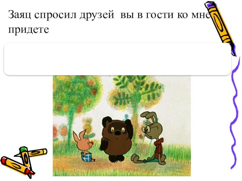 Слайд 84Заяц спросил друзей вы в гости ко мне придете