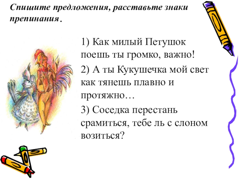 Слайд 98Составьте схемы предложений, расставляя знаки препинания.
