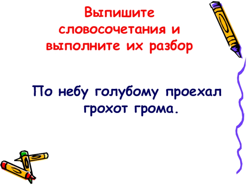 Слайд 5Выпишите словосочетания и выполните их разбор