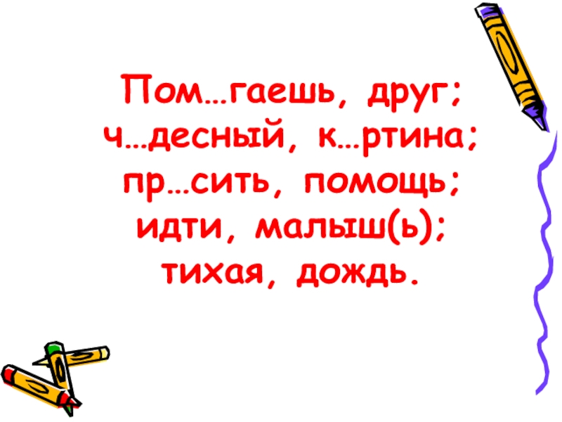Слайд 2Пом…гаешь, друг; ч…десный, к…ртина;
