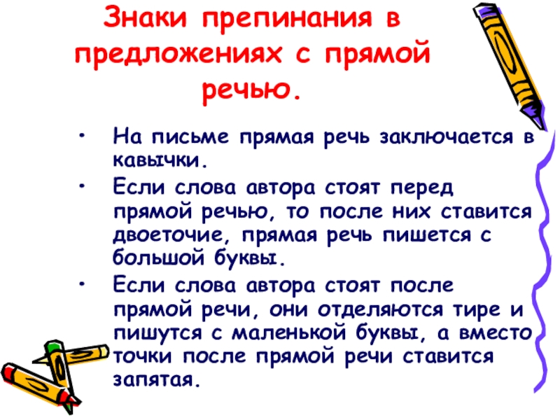 Слайд 80Знаки препинания в предложениях с прямой речью.