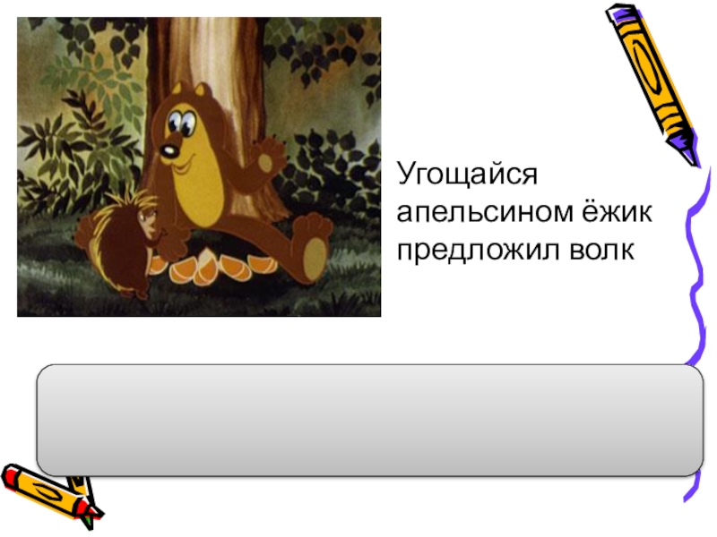 ,,Угощайся апельсином, ёжик,” - предложил волк.