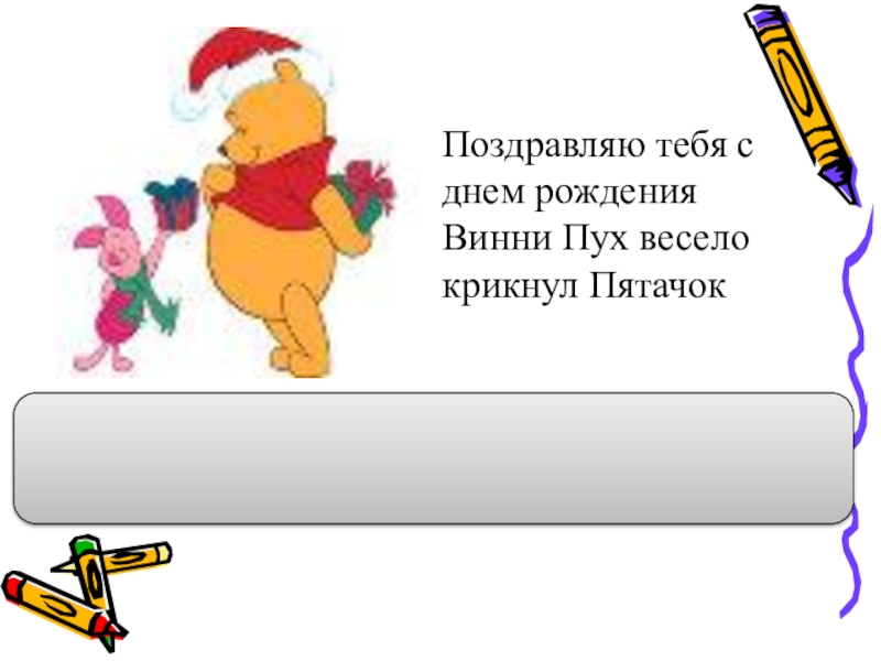 Слайд 89Поздравляю тебя с днем рождения Винни Пух весело крикнул Пятачок