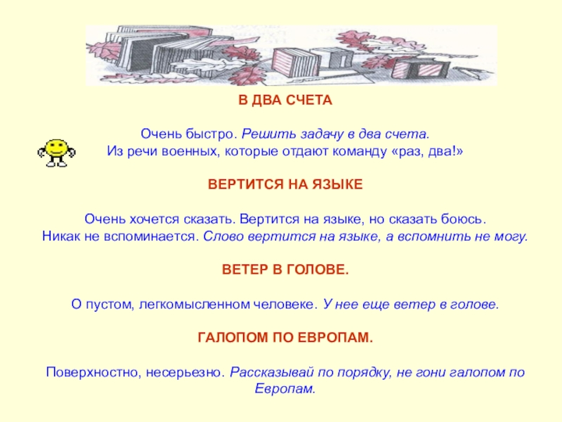 4. Подобрать примеры для объяснения смысла фразеологизмов