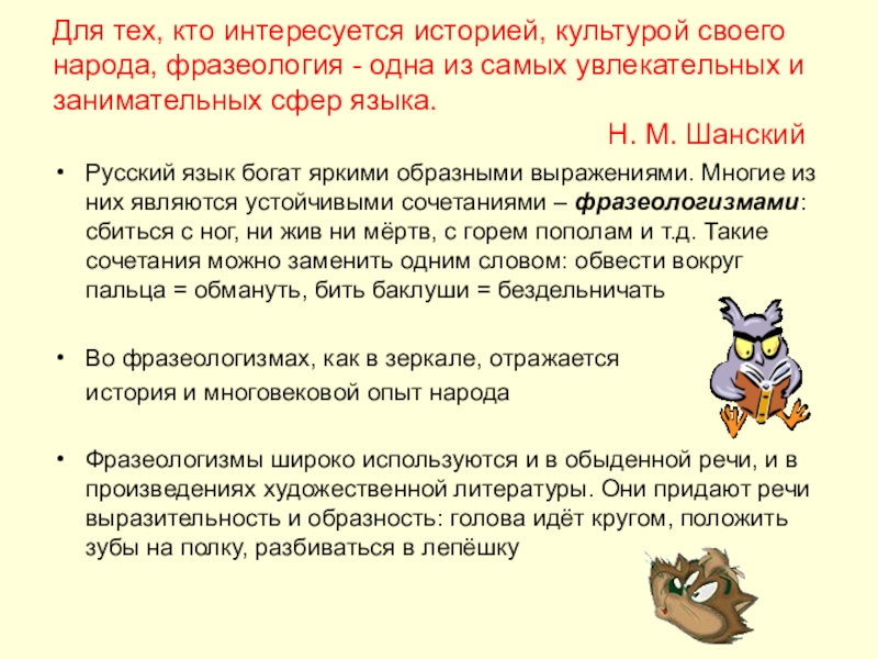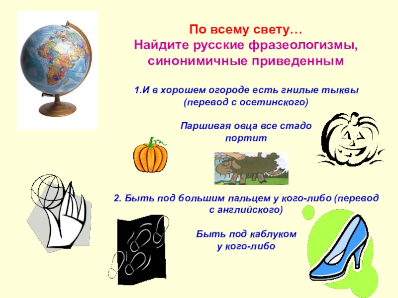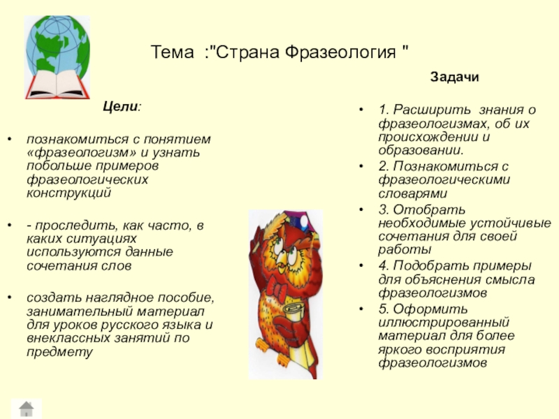 1. Расширить знания о фразеологизмах, об их происхождении и образовании.