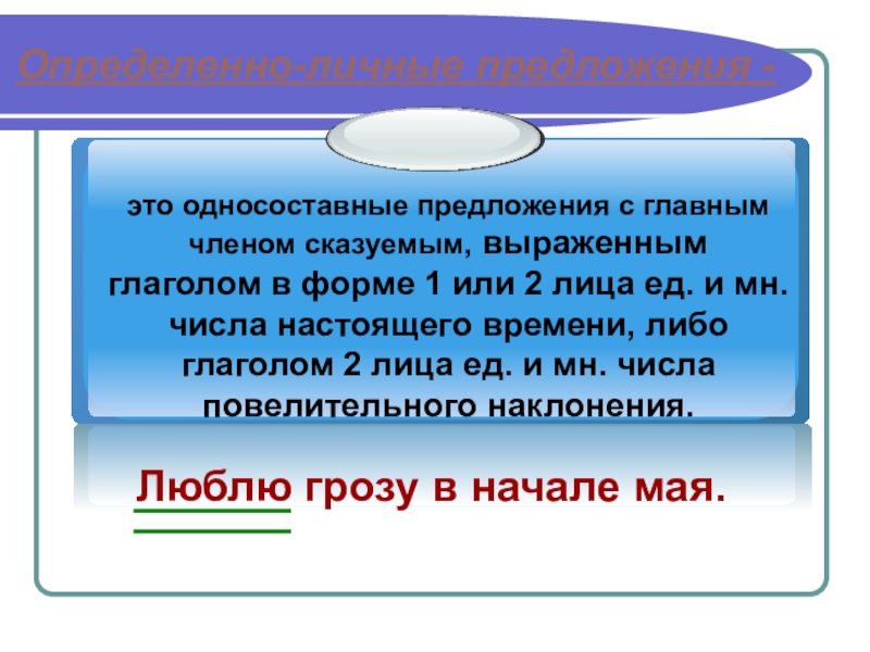 Определенно-личные предложения -Люблю грозу в начале мая.