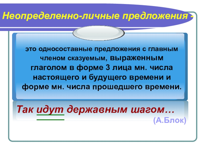 Неопределенно-личные предложения -Так идут державным шагом…(А.Блок)
