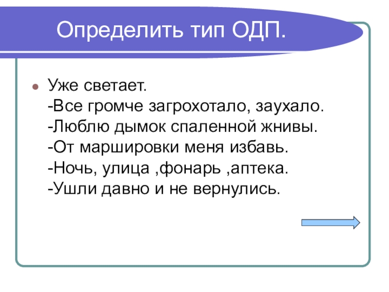 Слайд 8 Определить тип ОДП.