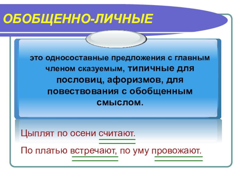 ОБОБЩЕННО-ЛИЧНЫЕЦыплят по осени считают.По платью встречают, по уму провожают.