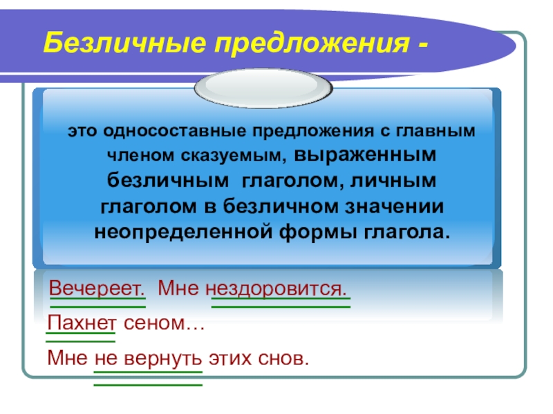 Безличные предложения - Вечереет. Мне нездоровится.Пахнет сеном…Мне не вернуть этих снов.