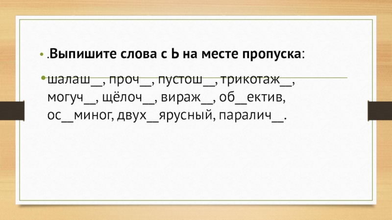Слайд 4.Выпишите слова с Ь на месте пропуска: