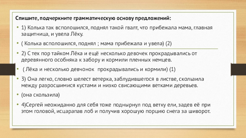 Слайд 11Спишите, подчеркните грамматическую основу предложений:
