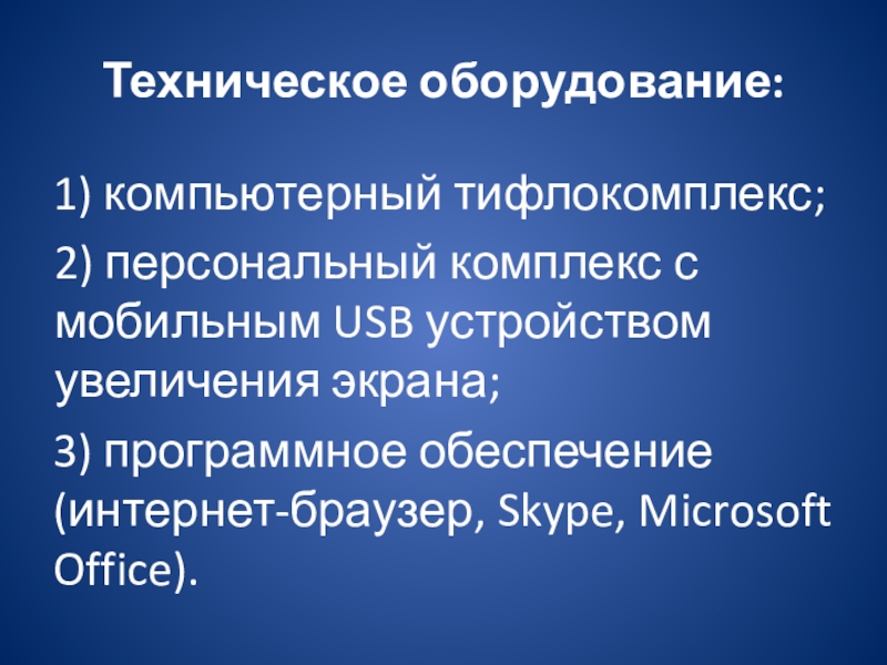 3) программное обеспечение(интернет-браузер, Skype, Microsoft Office).