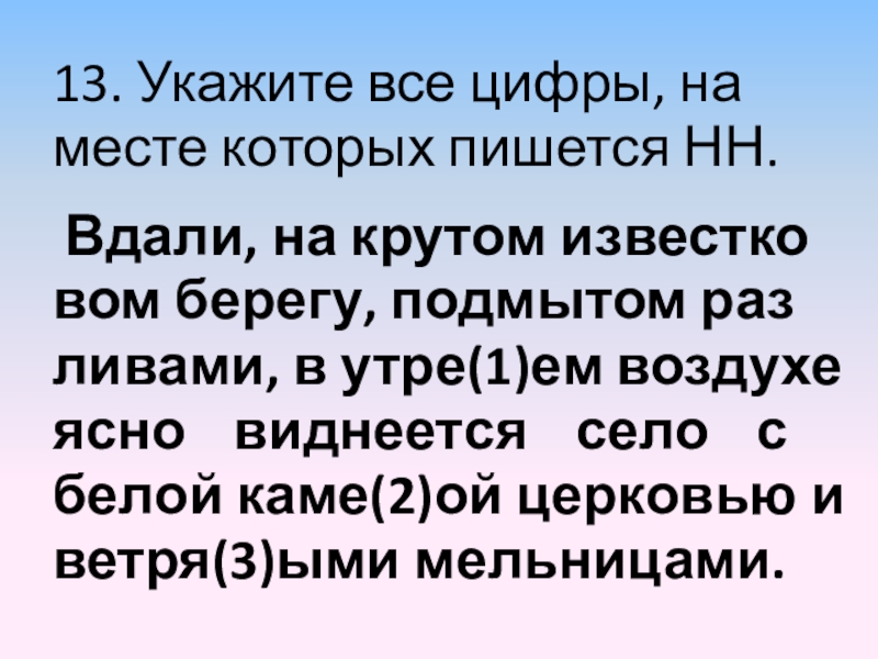 Слайд 1313. Укажите все цифры, на месте которых пишется НН.