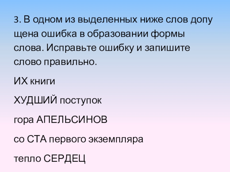 Слайд 33. В одном из выделенных ниже слов допущена ошибка в образовании