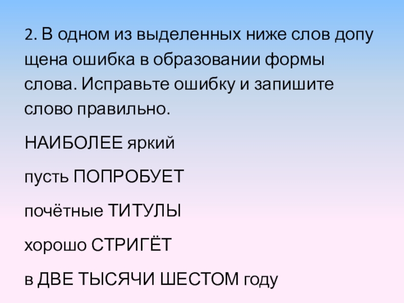 Слайд 11. В одном из выделенных ниже слов допущена ошибка в образовании