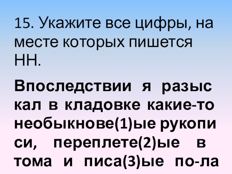 Слайд 1515. Укажите все цифры, на месте которых пишется НН.