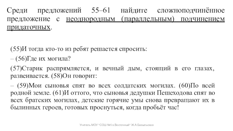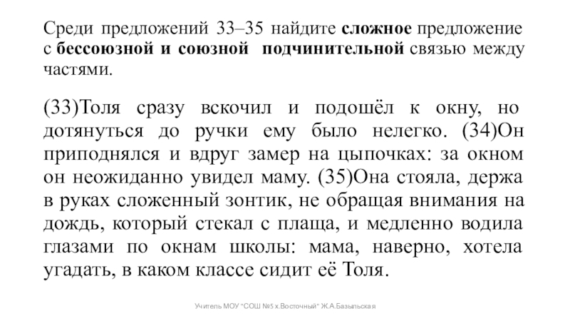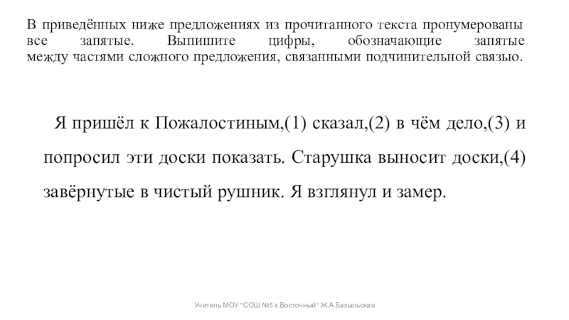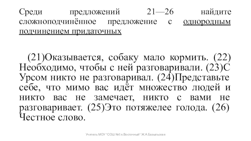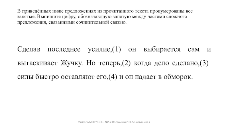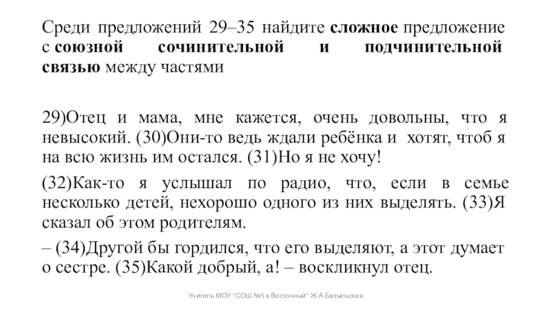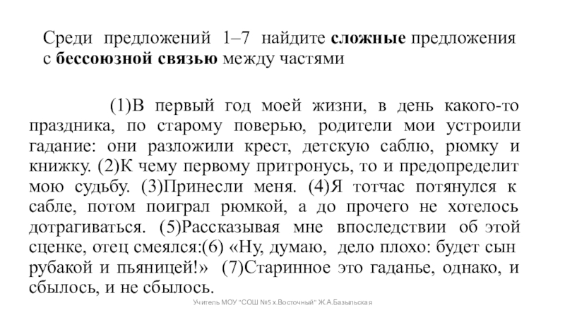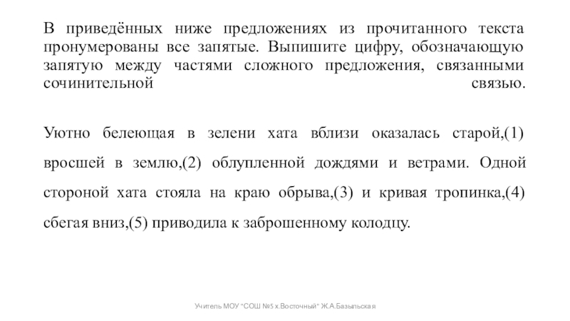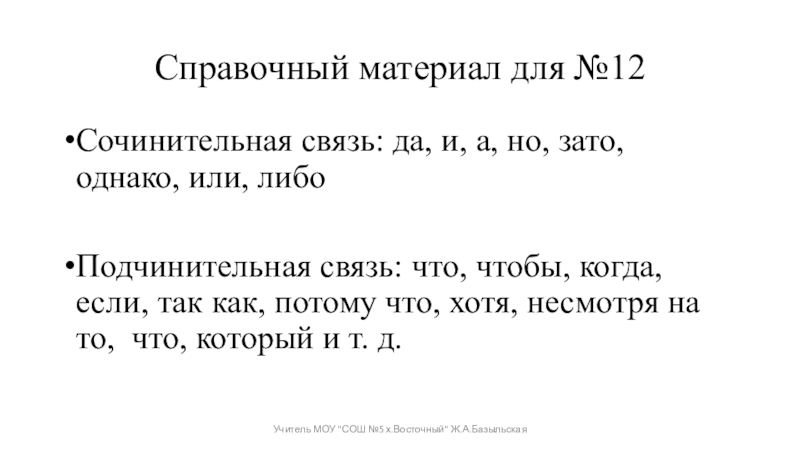 Учитель МОУ "СОШ №5 х.Восточный" Ж.А.Базыльская