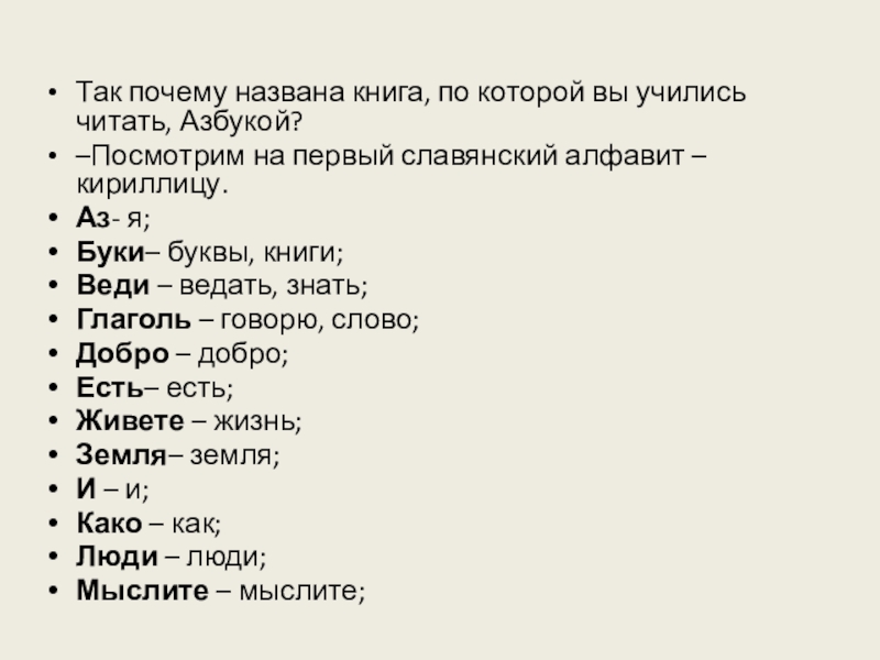 Слайд 33Так почему названа книга, по которой вы учились читать, Азбукой?