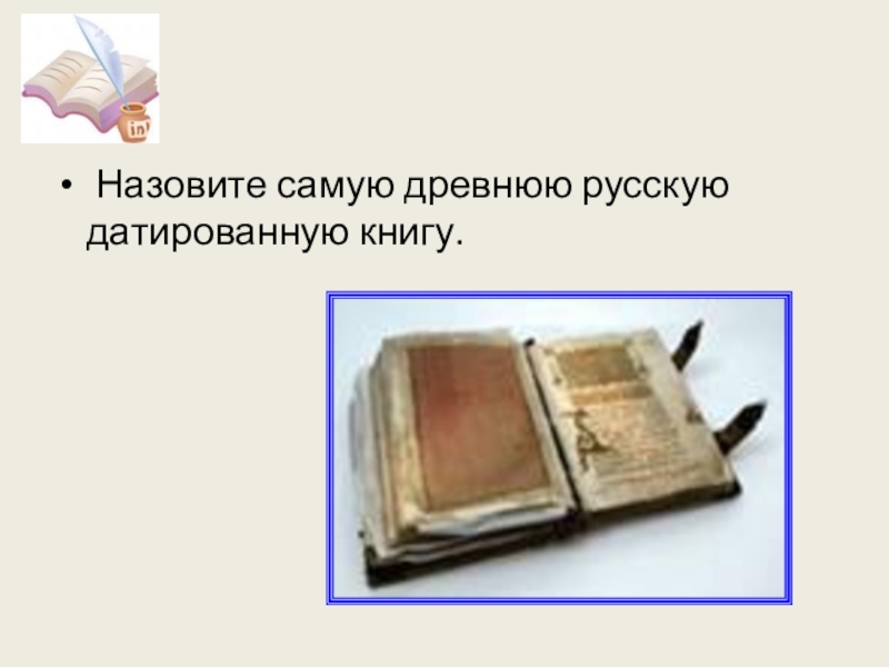 Слайд 31 Назовите самую древнюю русскую датированную книгу.