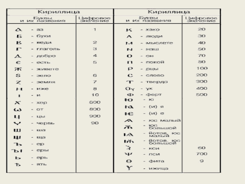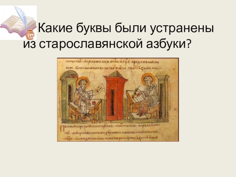 Слайд 10 Какие буквы были устранены из старославянской азбуки?