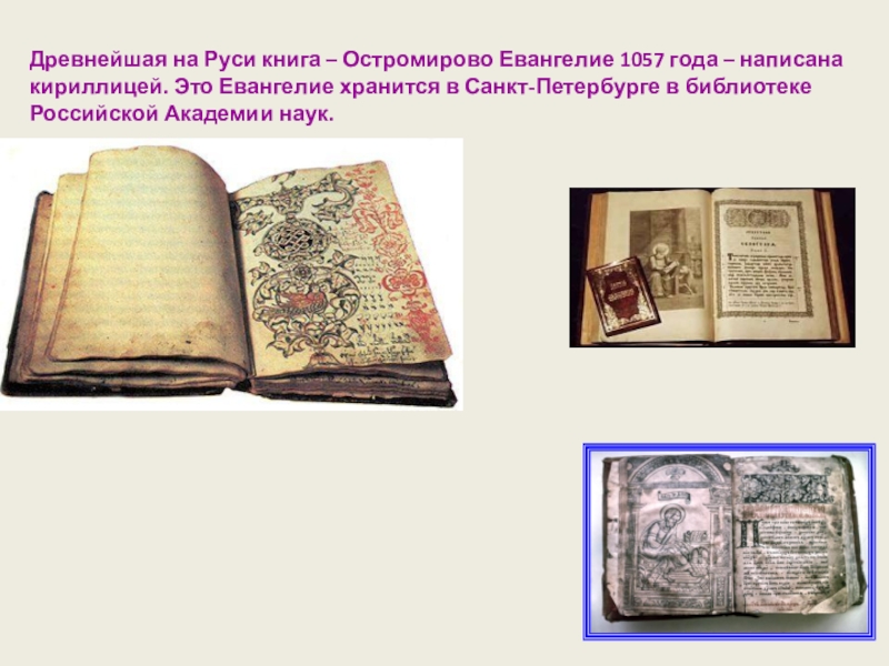 Слайд 32Древнейшая на Руси книга – Остромирово Евангелие 1057 года – написана