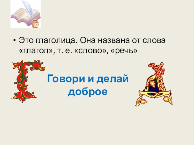 Слайд 15Это глаголица. Она названа от слова «глагол», т. е. «слово», «речь»
