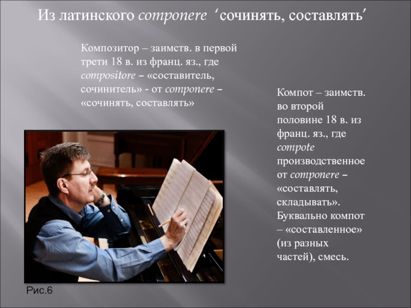 Компот – заимств. во второй половине 18 в. из франц. яз., где compote производственное от componere – «составлять, складывать». Буквально компот – «составленное» (из разных частей), смесь.