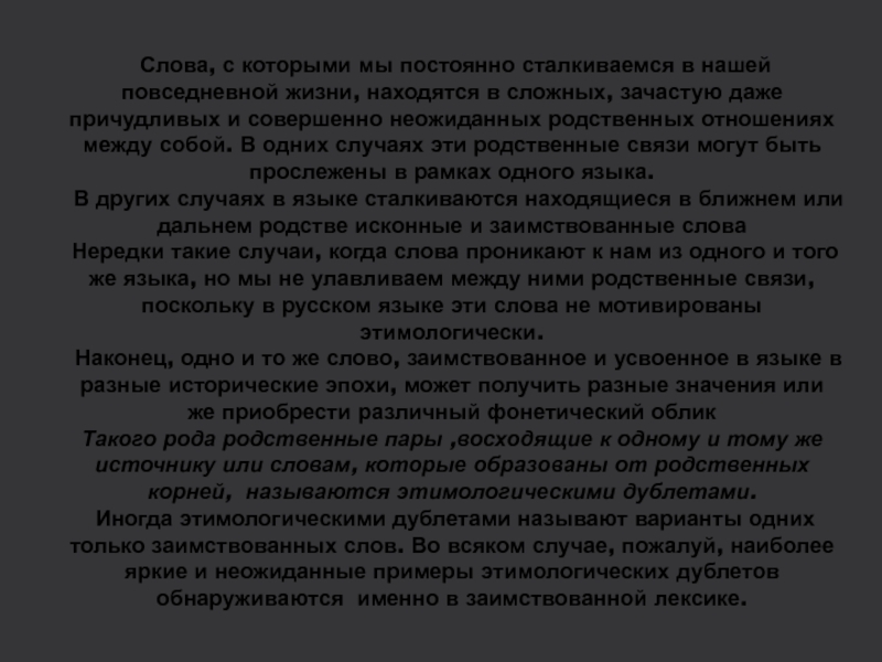 Слово облако является старославянизмом в русском языке. Этимология этого слова станет ясной, если мы реконструируем основу ob-volk-, в составе которой сочетание –bv-[-бв-] упростилось в [б]. Следовательно, этимологически облако – это то, что обволакивает, застилает небо. А отсюда – через значение глагола волочить – нам становится ясной родственная связь между словами облако и волк.