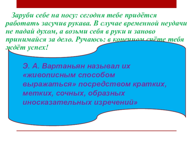 Э. А. Вартаньян называл их «живописным способом выражаться» посредством кратких, метких, сочных, образных иносказательных изречений»