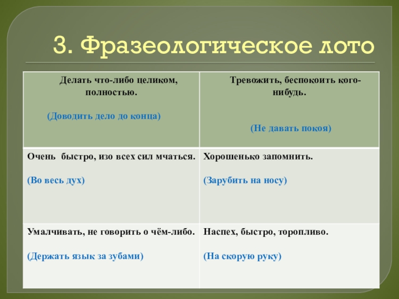 -раздел лингвистики, изучающий устойчивые словосочетания.