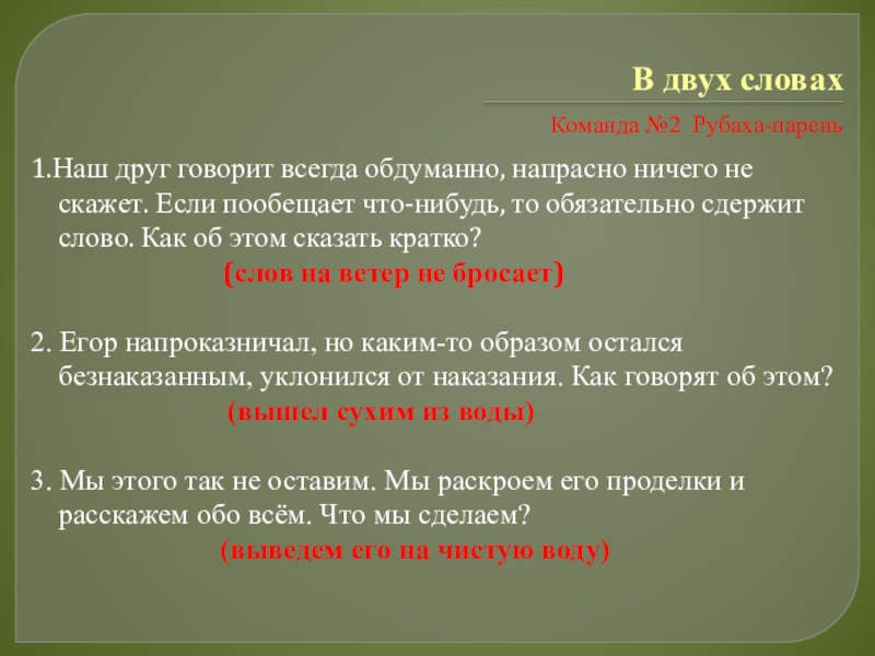 КОМАНДА №2 РУБАХА-ПАРЕНЬ