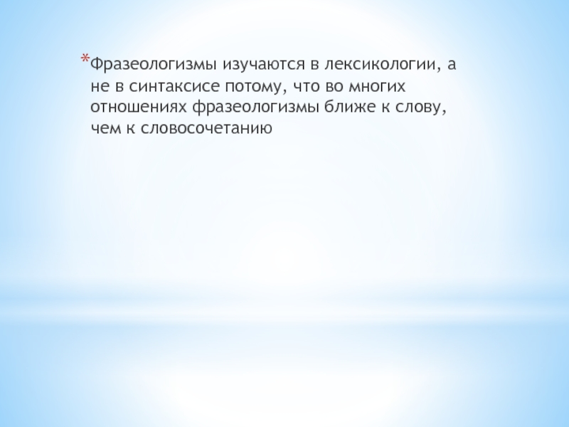 Слайд 3Фразеологизмы изучаются в лексикологии, а не в синтаксисе потому, что во