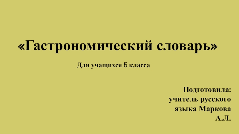 «Гастрономический словарь» Для учащихся 5 классаПодготовила: учитель русского языка Маркова А.Л.
