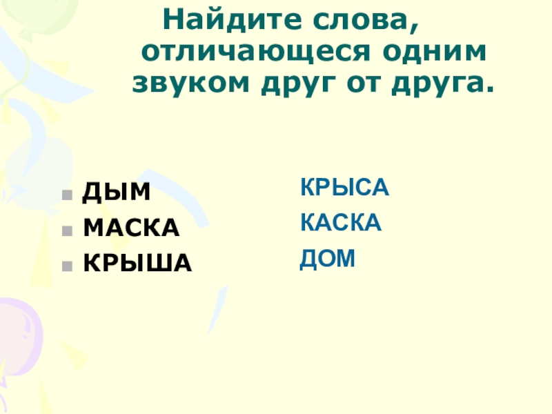 Слайд 29Найдите слова, отличающеся одним звуком друг от друга.