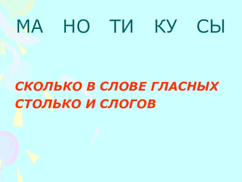 МА  НО  ТИ  КУ  СЫСКОЛЬКО В СЛОВЕ ГЛАСНЫХСТОЛЬКО И СЛОГОВ