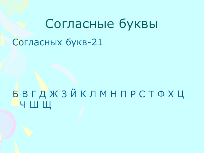 Согласные буквыСогласных букв-21Б В Г Д Ж З Й К Л М Н П Р С Т