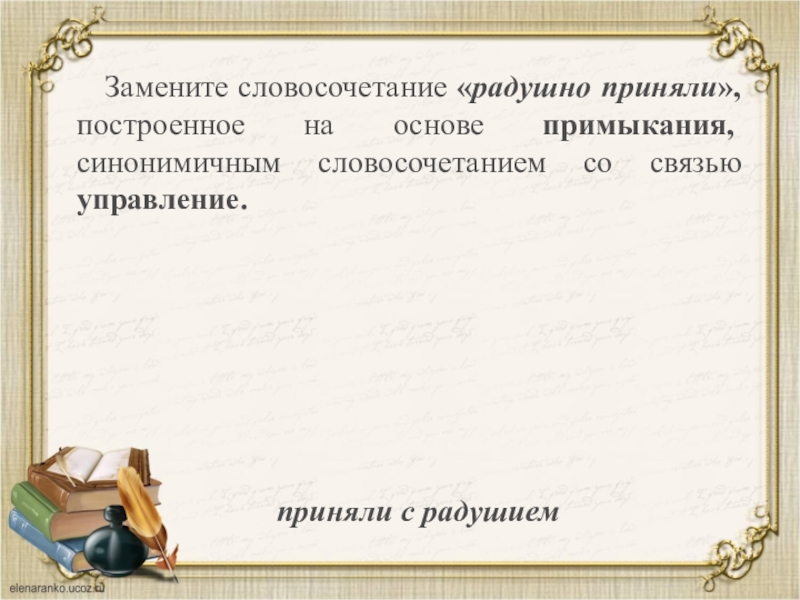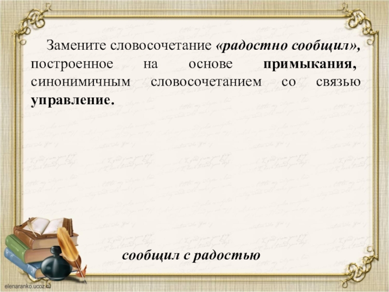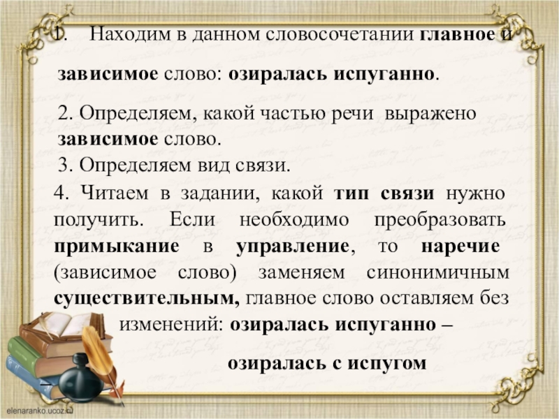 4. Читаем в задании, какой тип связи нужно получить. Если необходимо преобразовать примыкание в управление, то наречие (зависимое слово) заменяем синонимичным существительным, главное слово оставляем без