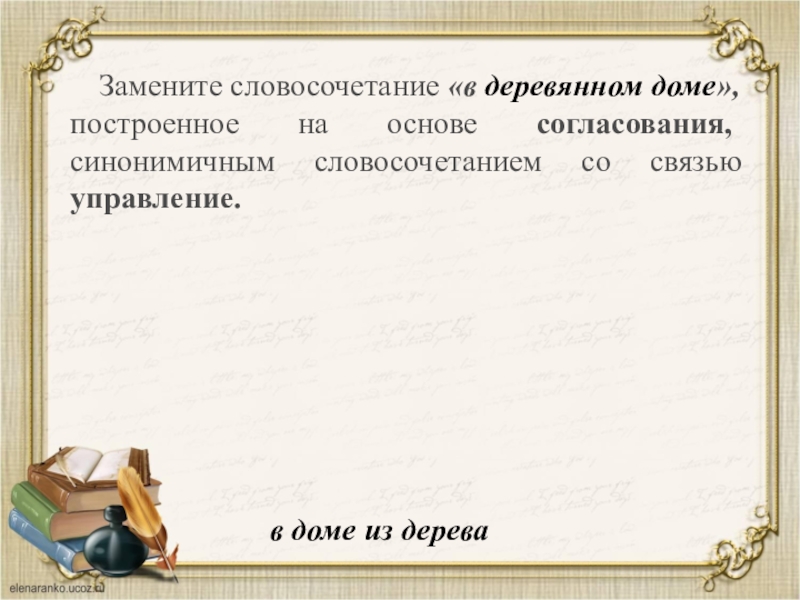 Если необходимо преобразовать согласование в управление, то прилагательное заменяем однокоренным существительным: