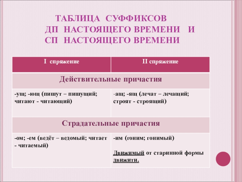 Слайд 5ТАБЛИЦА СУФФИКСОВ
